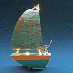 Γούρι ιστιοπλοϊκό με χάλκινο πανί και κορίτσι στο κατάστρωμα