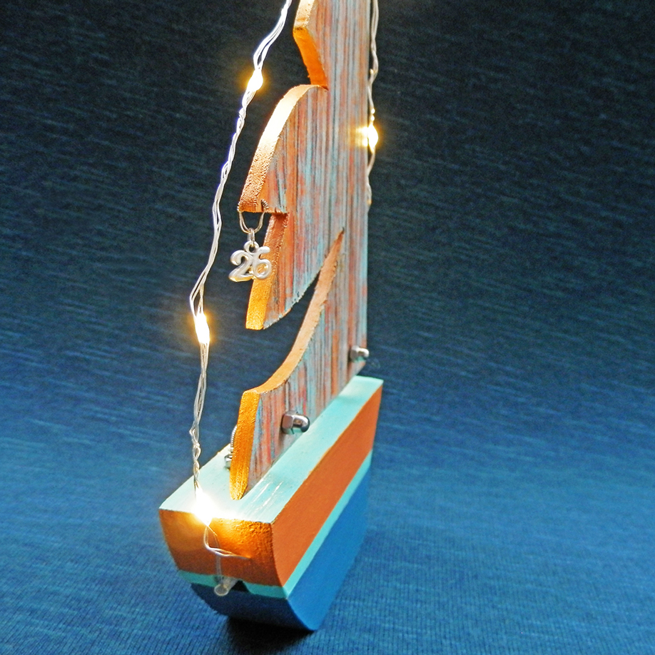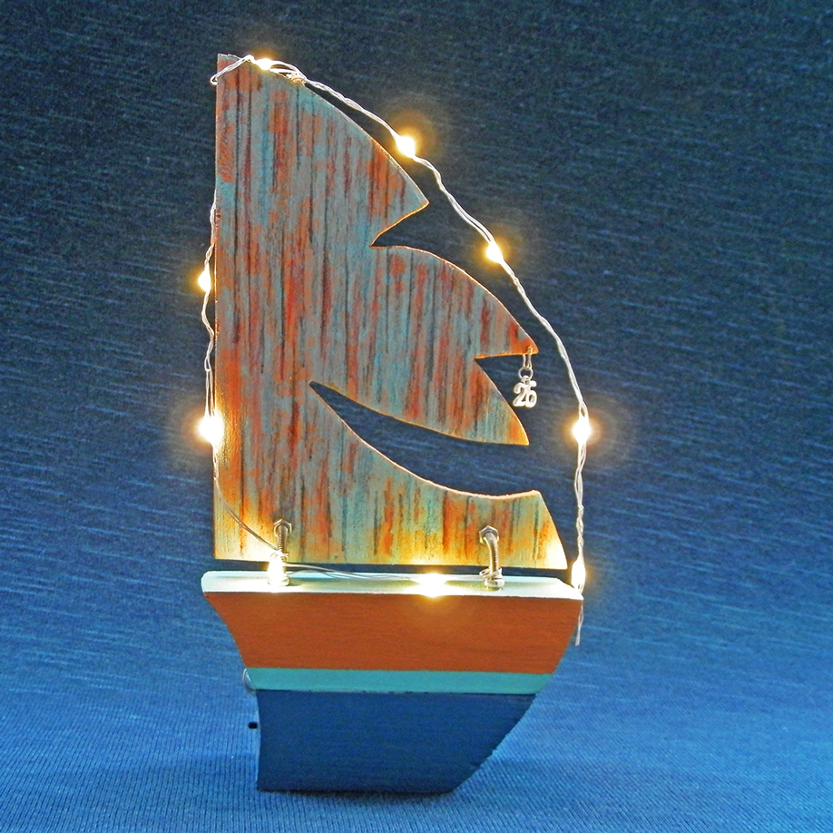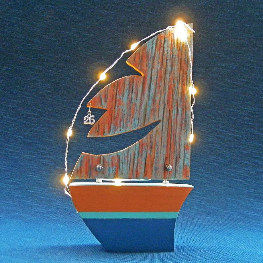 Γούρι ιστιοπλοϊκό με ξύλινο πανί – γελαστό πρόσωπο